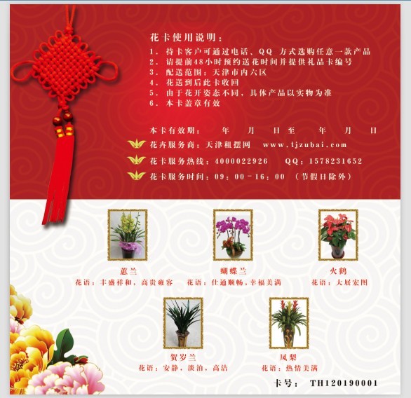 鮮花禮品卡是由天津租擺網(wǎng)提供的禮品憑證賀卡。